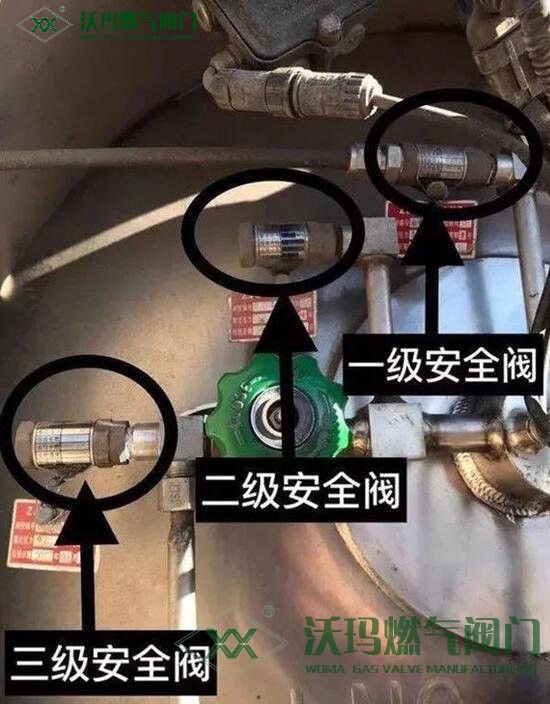 以下圖新款氣瓶為例,共三級(個)安全閥,設定自動開啟壓力分別為1.90、2.4、2.85Mpa。也就是如果氣瓶故障時,先升溫后升壓直至爆炸,需要三個安全閥全部同時失效,而這個幾率,約等于零!